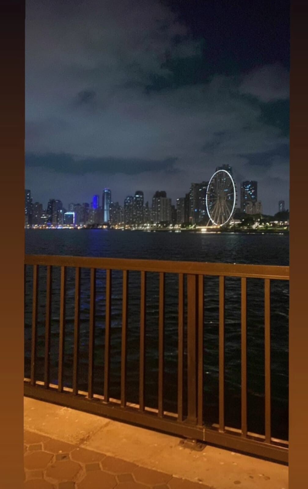 The city glows across the water, lights dancing quietly like they’re trying not to forget. The Ferris wheel keeps turning, slow and steady, as if it saw everything and chose to stay silent. Even the waves seem calmer, like they were touched by something gentle that has now slipped away.