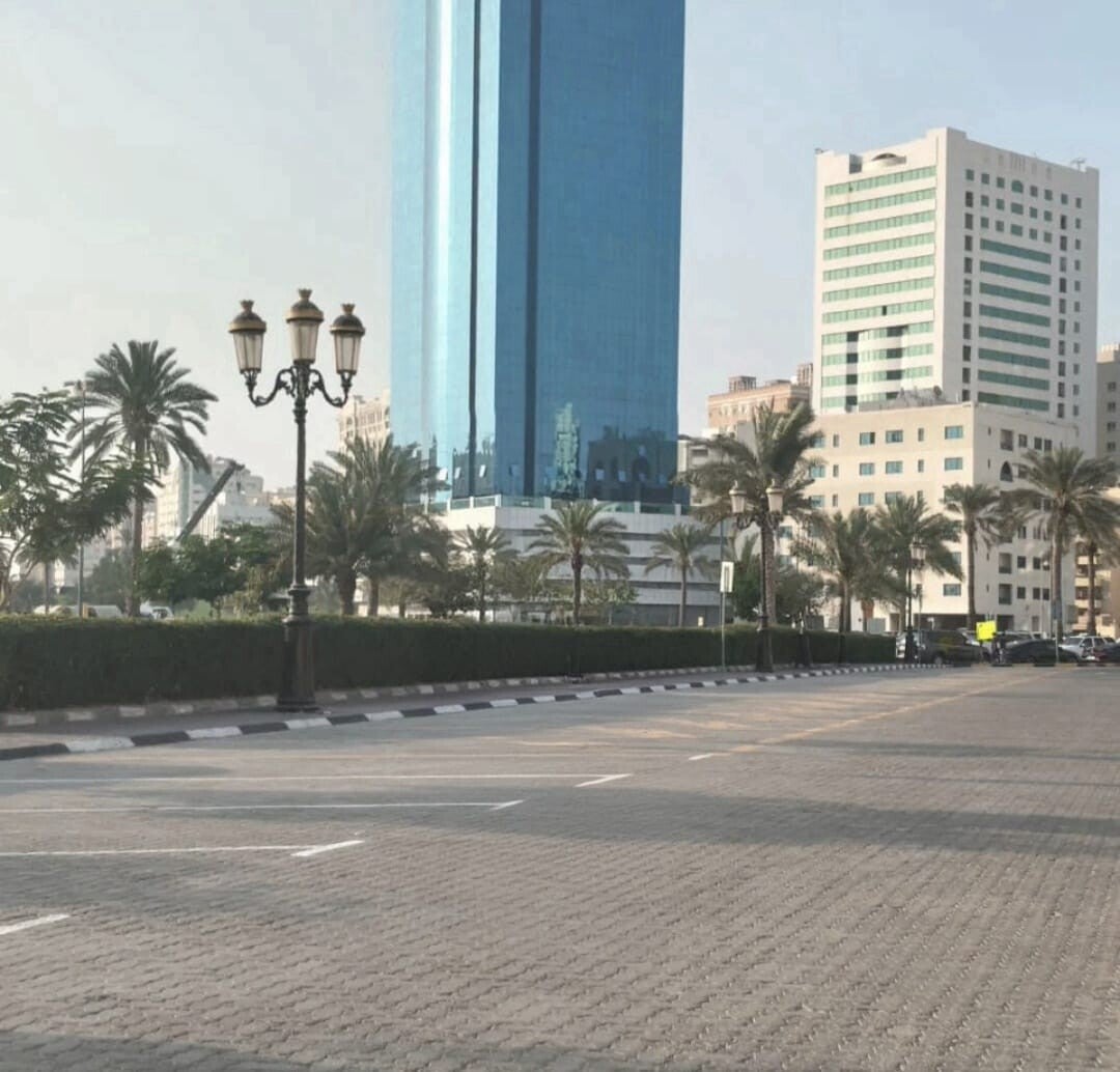 The street still remembers though the palm trees standing tall like they’re keeping a secret the soft morning light brushing against the glass tower, and the calm, almost shy silence of the road waiting for footsteps that already passed